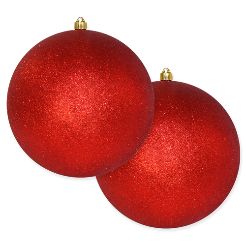 - 12" (300mm) Giant Commercial Shatterproof Ball Ornament, Red Glitter, Case, 2 Pieces