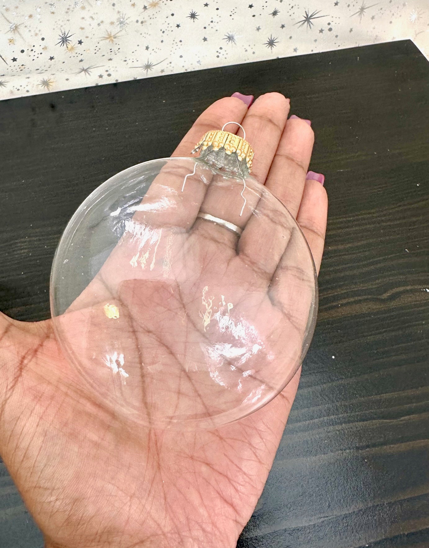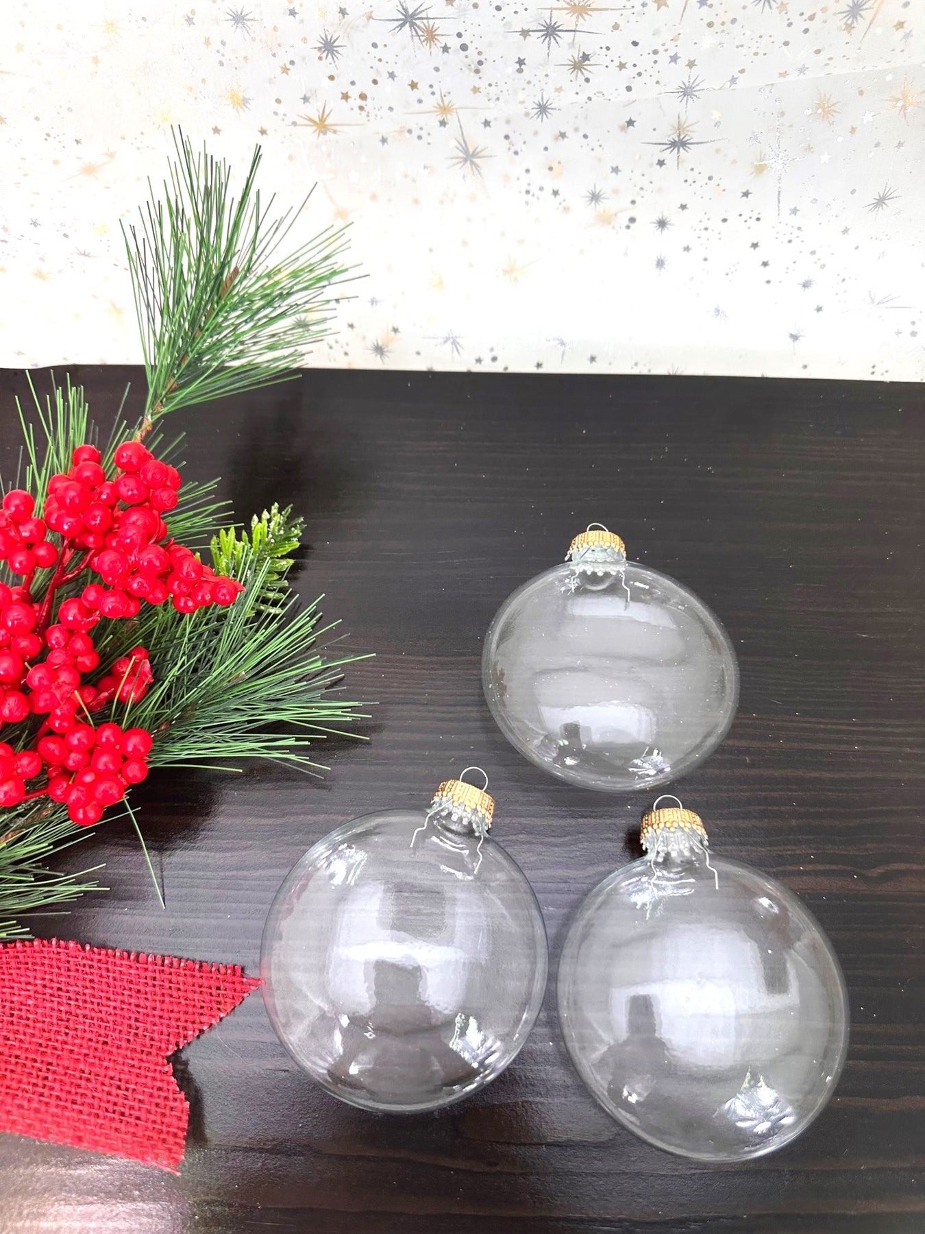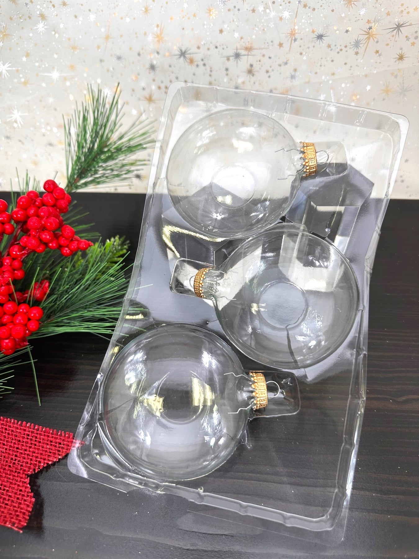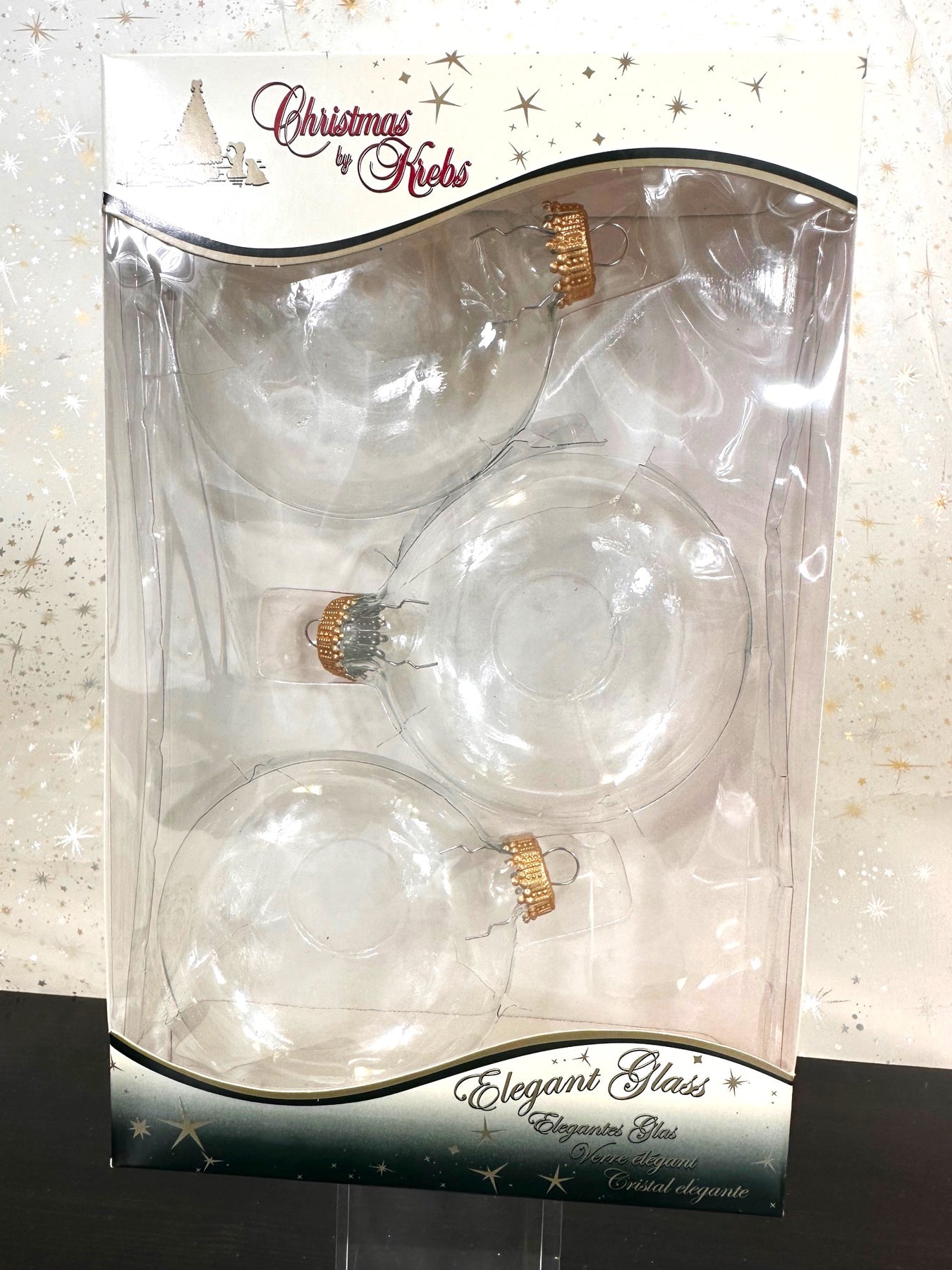 3" (76mm) Glass Disc Ornaments, Clear with Gold Crown Caps, 3/Box, 24/Case, 72 Pieces