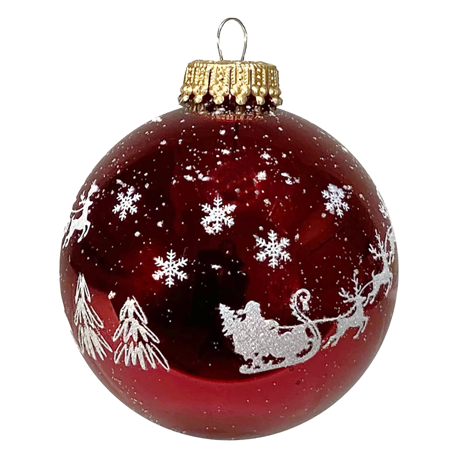 2 5/8" (67mm) Glass Ball Ornaments, Christmas Red with White Glitter Christmas Eve & Sugar Glitter Spritz, 4/Box, 12/Case, 48 Pieces
