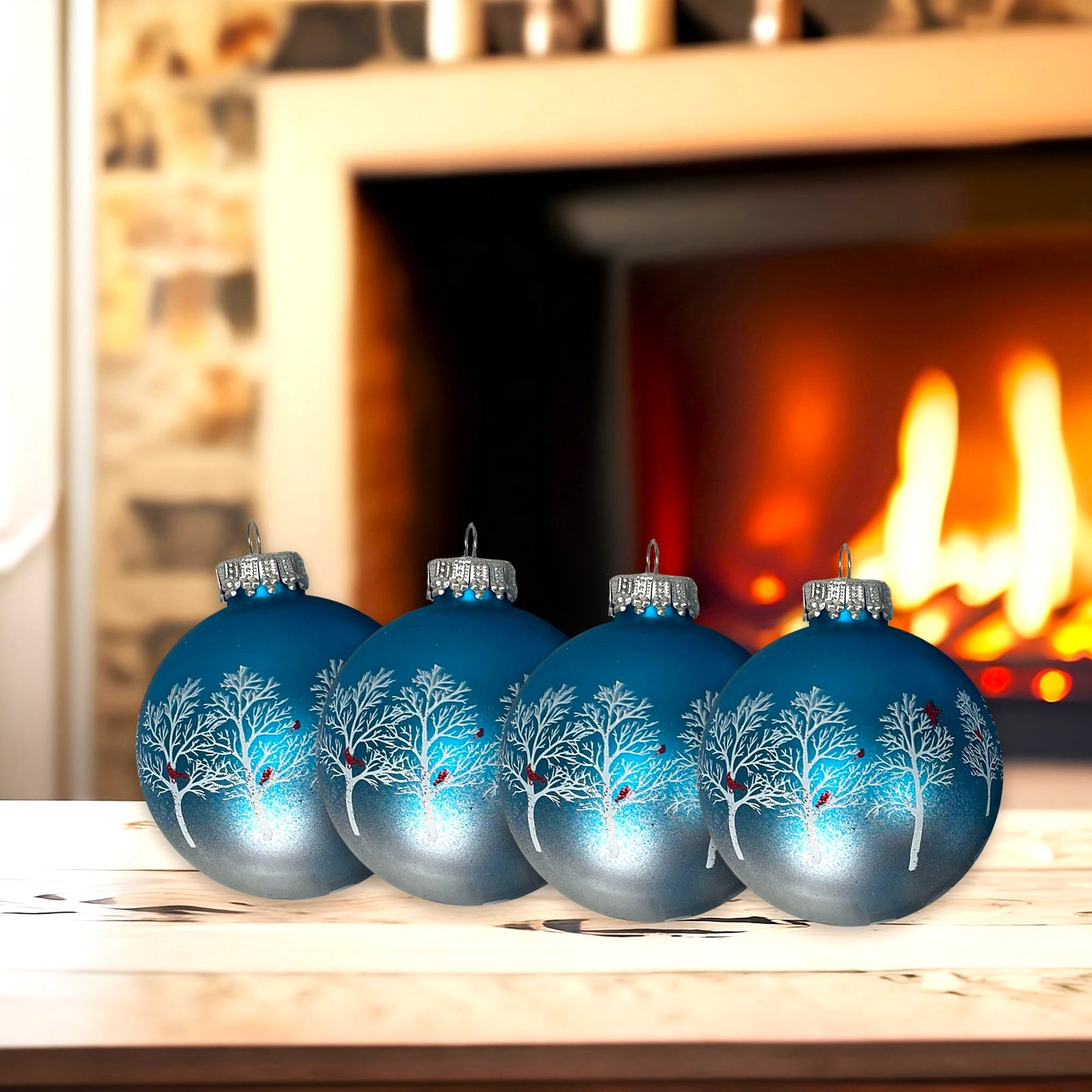 2 5/8" (67mm) Glass Ball Ornaments, Turquoise Bliss with Trees & Cardinals, 4/Box, 12/Case, 48 Pieces
