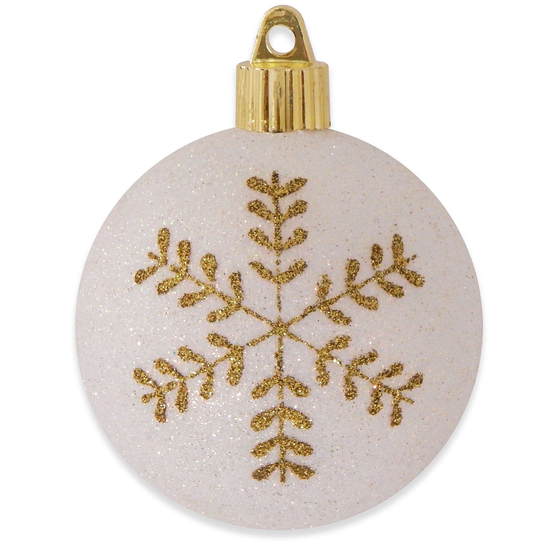 Snowball Glitter 3 1/4" (80mm) Shatterproof Ball with Gold Leafy Flakes. Bulk Packed with Hang Tag. 36 Pieces per Case. Made in Mexico