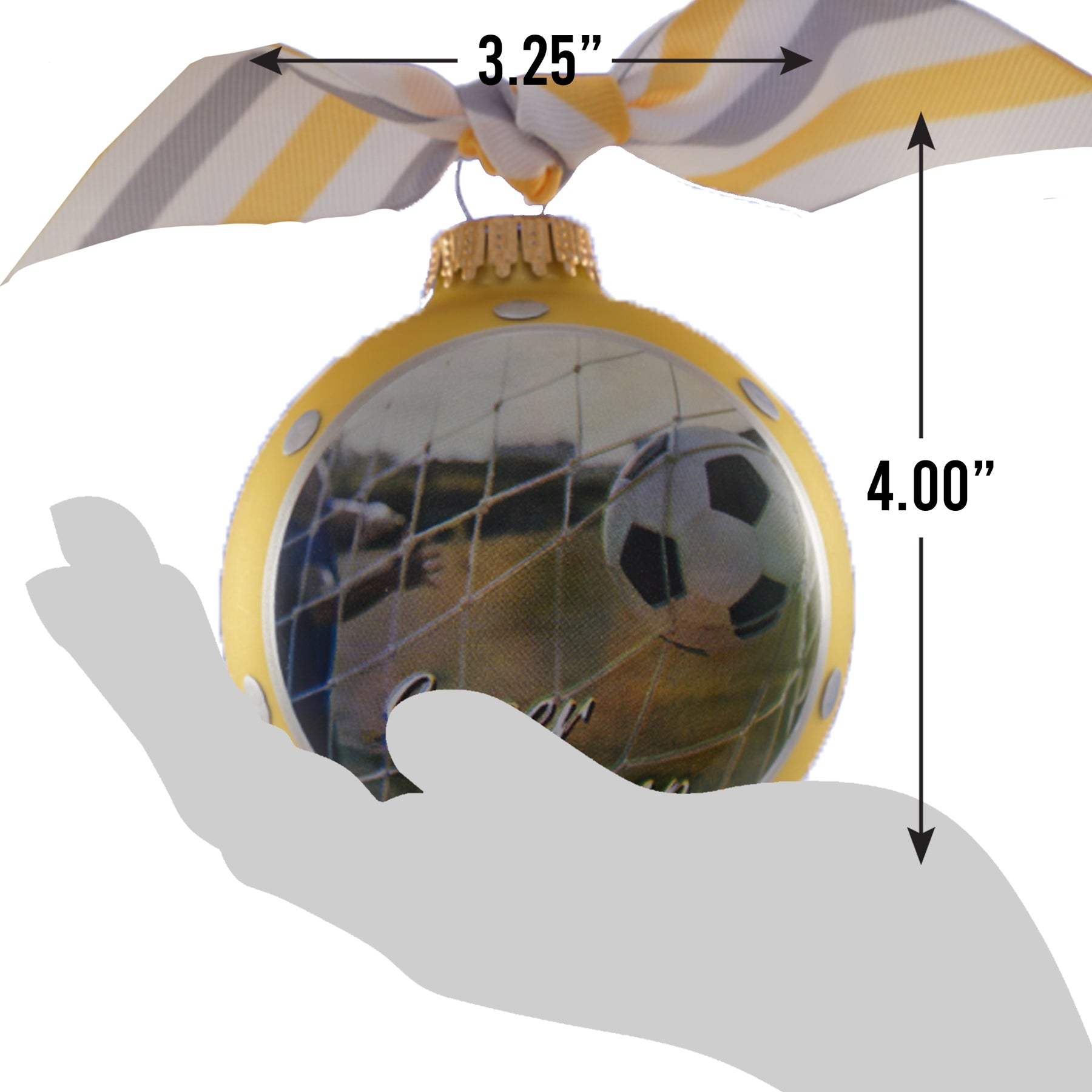 3 1/4" (80mm) Personalizable Hugs Specialty Gift Ornaments, Gold Velvet Ornament with Soccer Champ