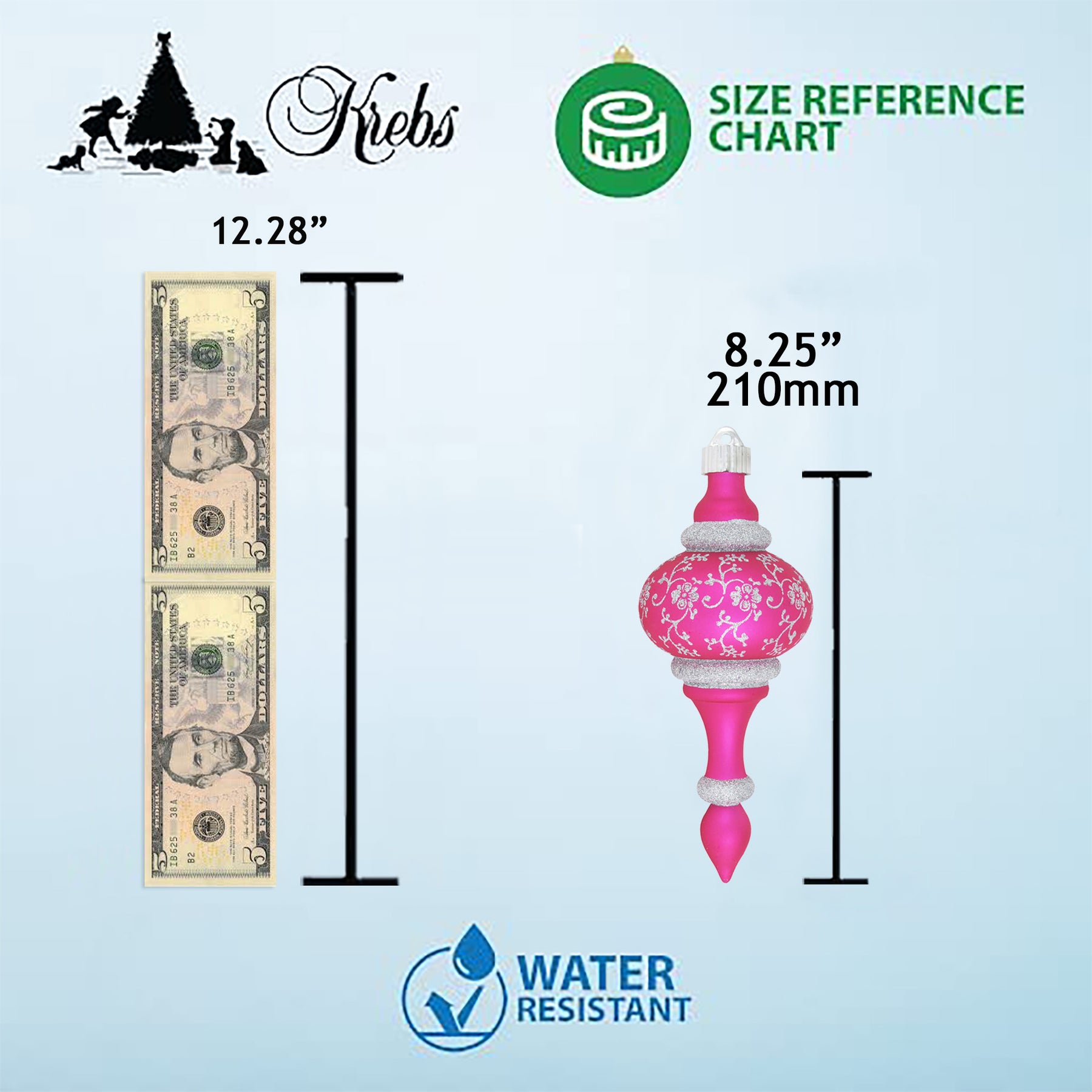 Regal Blue 8 2/3" (220mm) Shatterproof Small Finial with Silver Glitterlace and Silver Screw-On Cap. Bulk Packed with Hang Tag. 12 Pieces per Case. Made in Mexico.