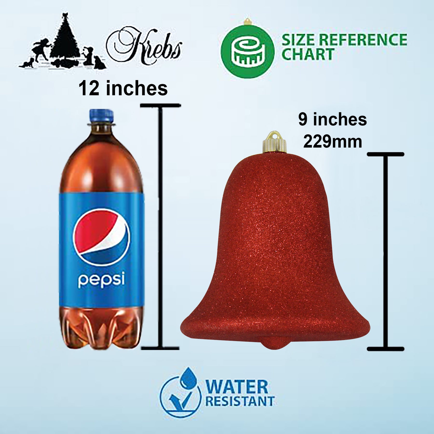 9" (229mm) Commercial Shatterproof Bell Ornaments, Red Glitter, 1/Box, 6/Case, 6 Pieces