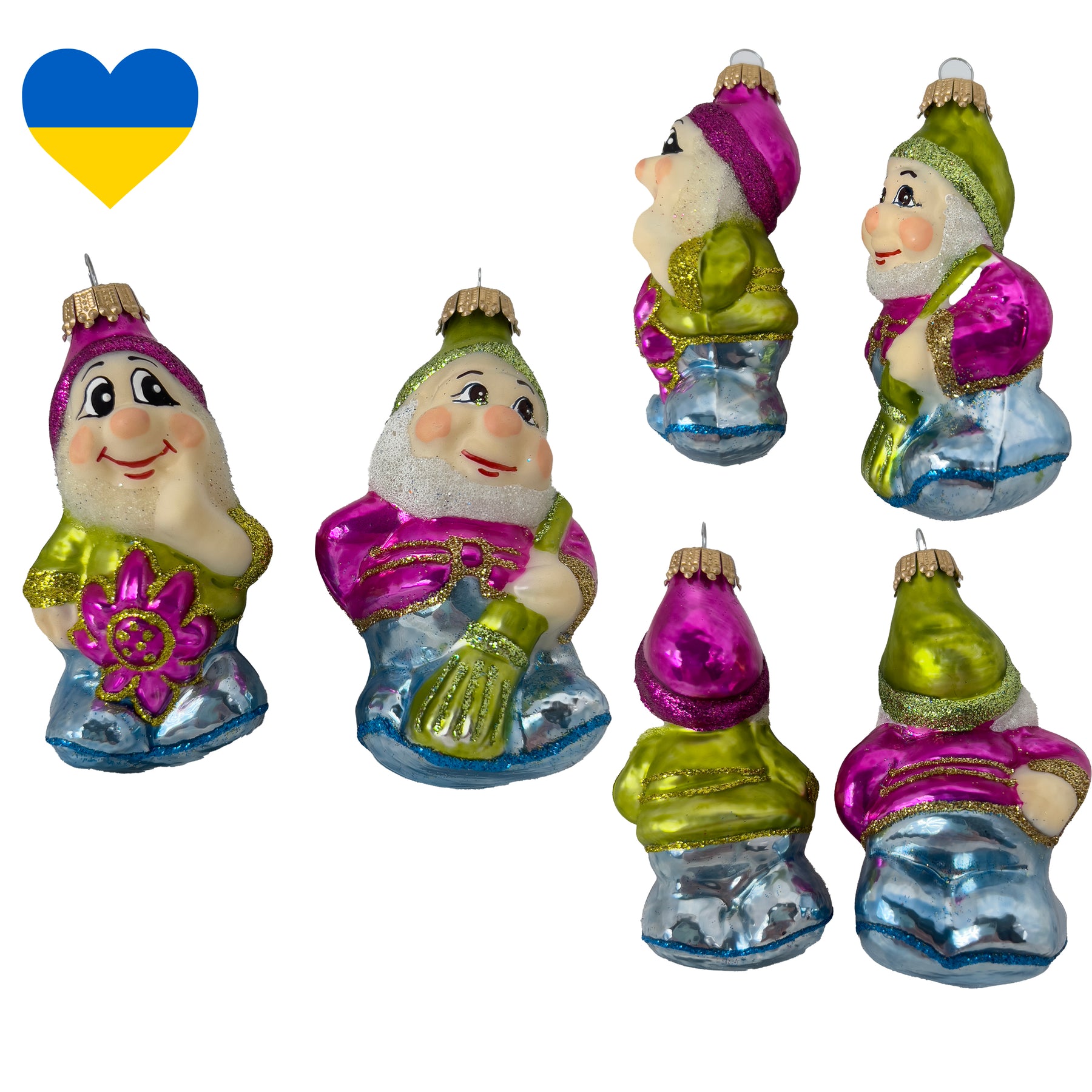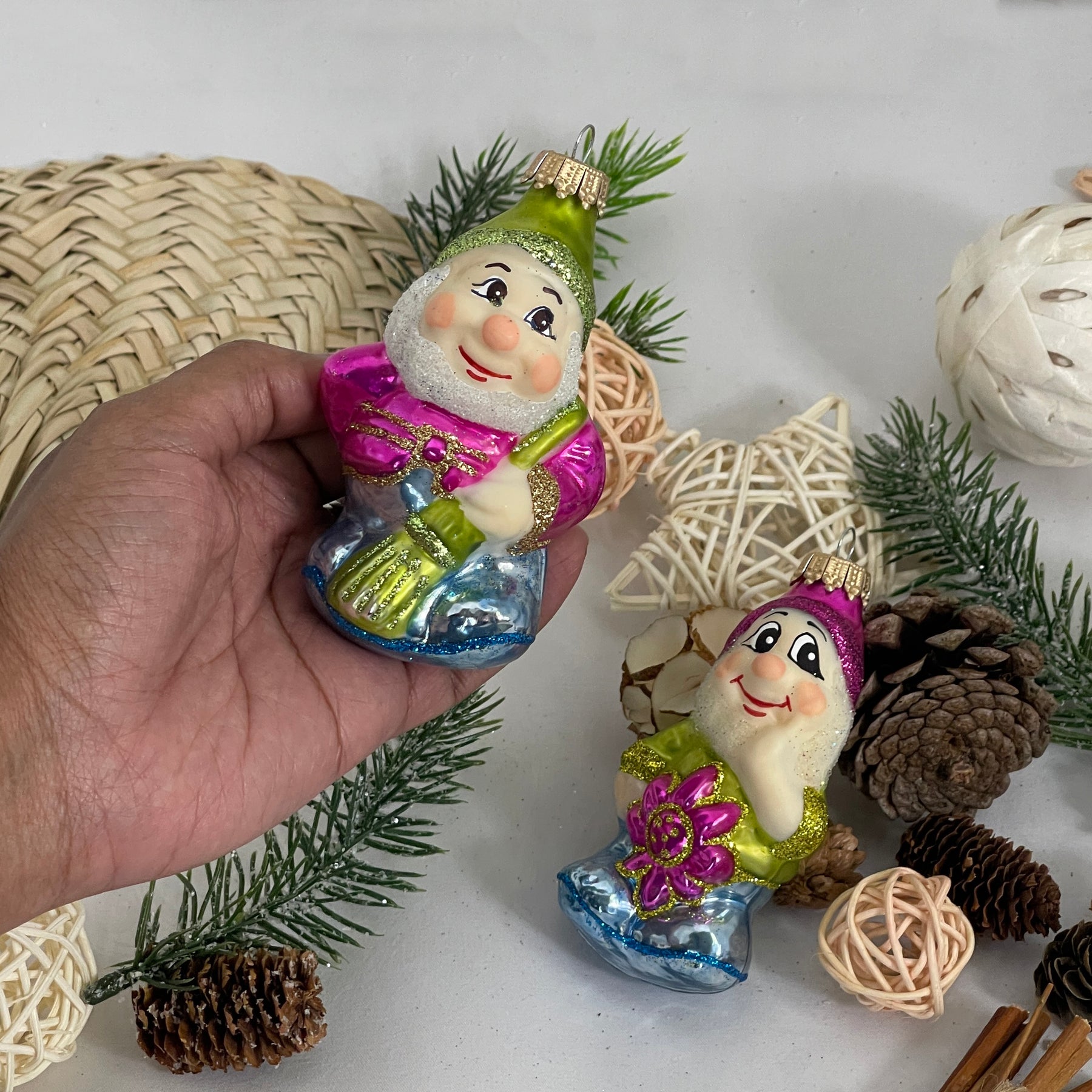 Enchanted Dwarf 2-piece Pink/ Green assortment, 4 inches Ornament. Bulk Packed with Hang Tag. 12 Pieces per Case. Made in Ukraine