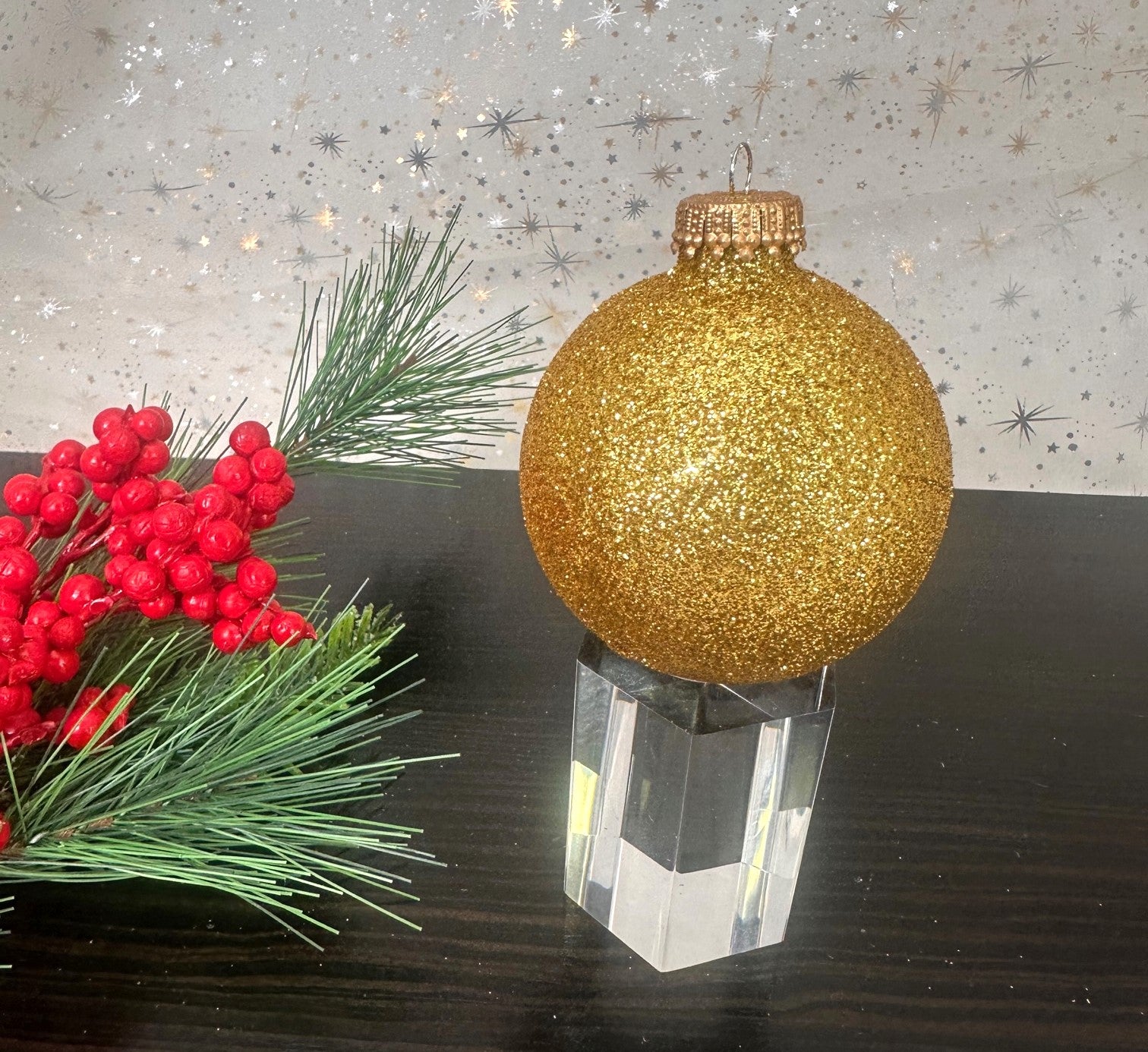 2 5/8" Gold Romance Glass Solid Color Variety Set. Colors include Gold Glitter, Gold Velvet and Aztec Gold. 12 Pieces per Box. 12 Boxes per Case. Made in USA.