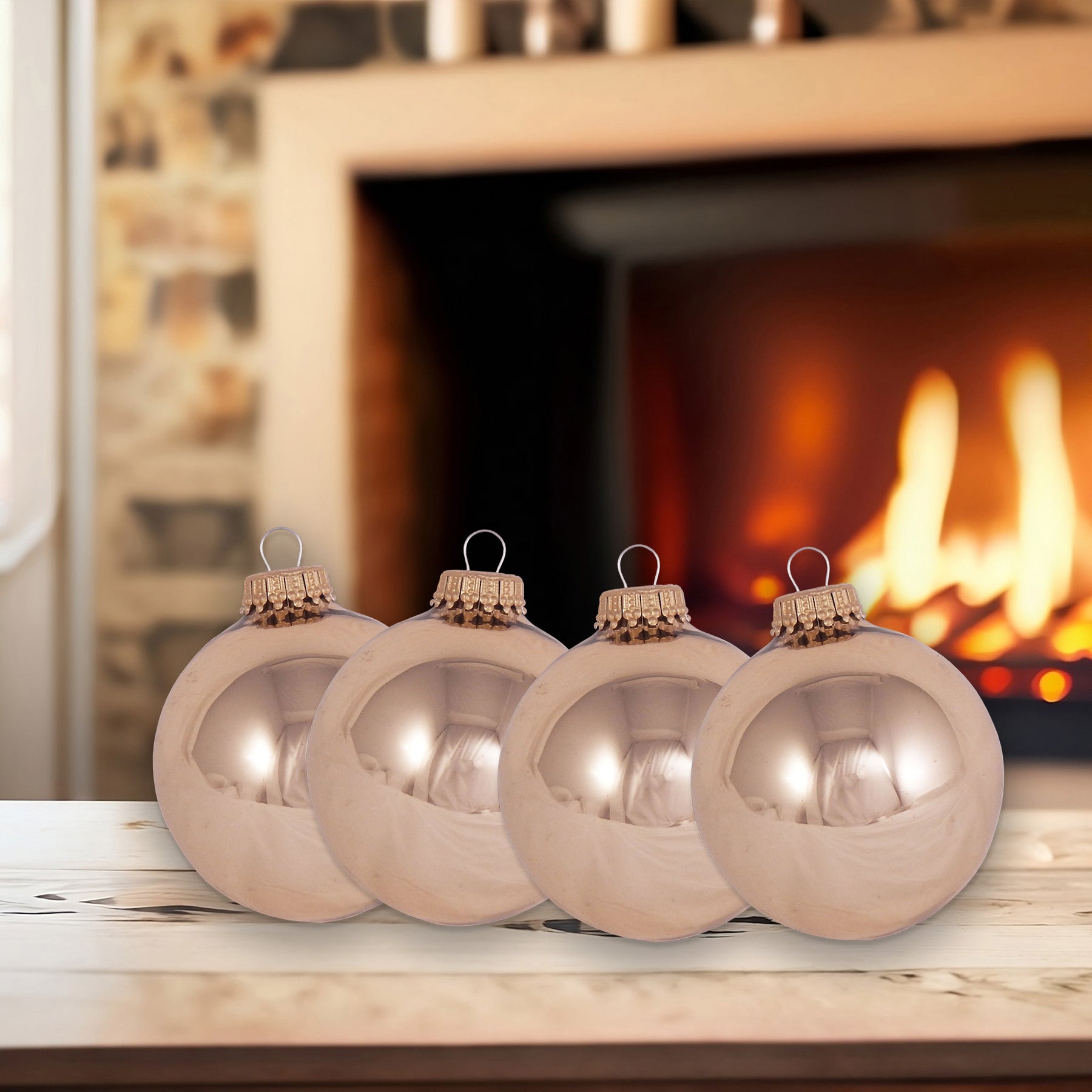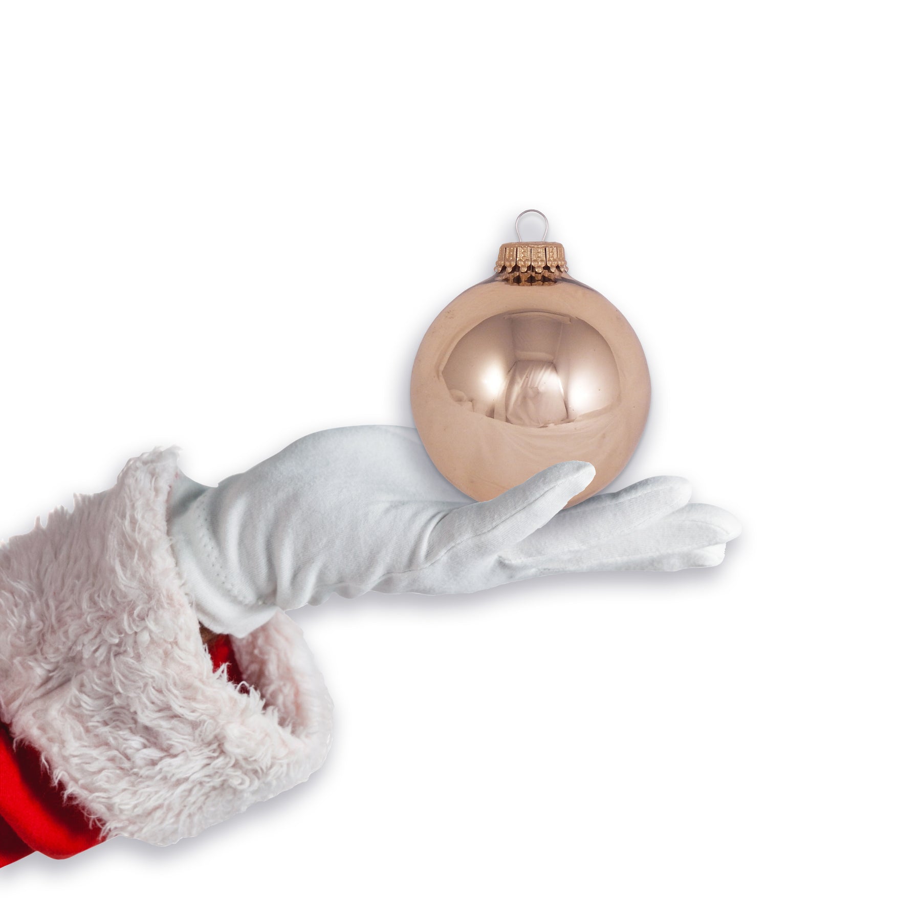 Molten Gold Shine 2 5/8" Glass Balls with Gold Crown Caps. 8 Pieces per Box. 12 Boxes per Case. Made in North America.