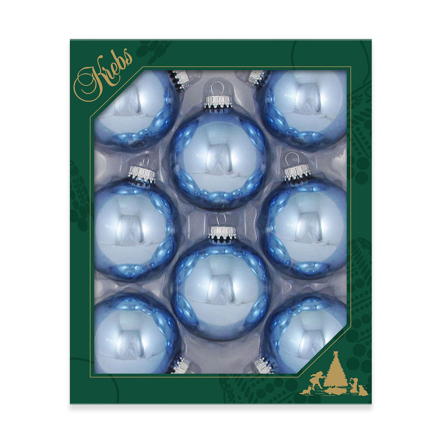 Alpine SHINE 2 5/8" Glass Balls with Silver Crown Caps. 8 Pieces per Box. 12 Boxes per Case. Made in North America.