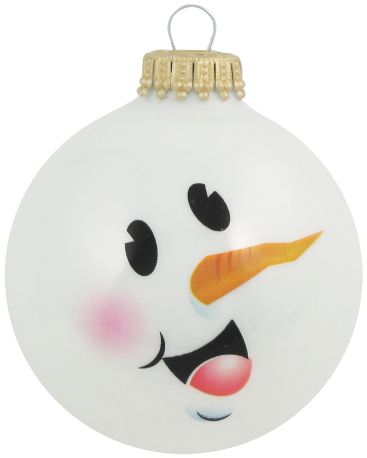 2 5/8"?Porcelain White?Glass Ball with Snowman Face. 4 Pieces per Box12 Boxes per Case. Made in USA.