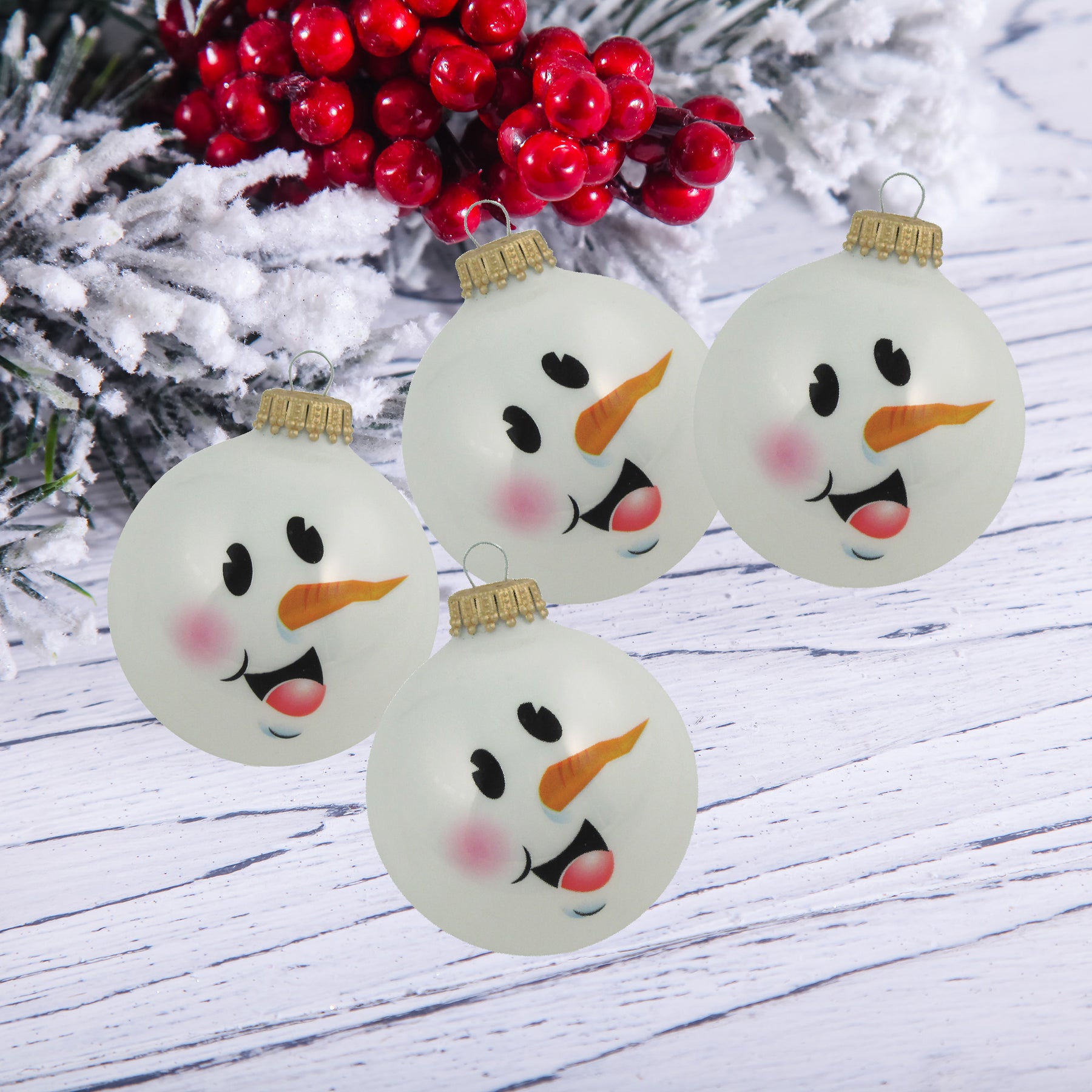 2 5/8" (67mm) Glass Ball Ornaments, Porcelain White with Snowman Face, 4/Box, 12/Case, 48 Pieces