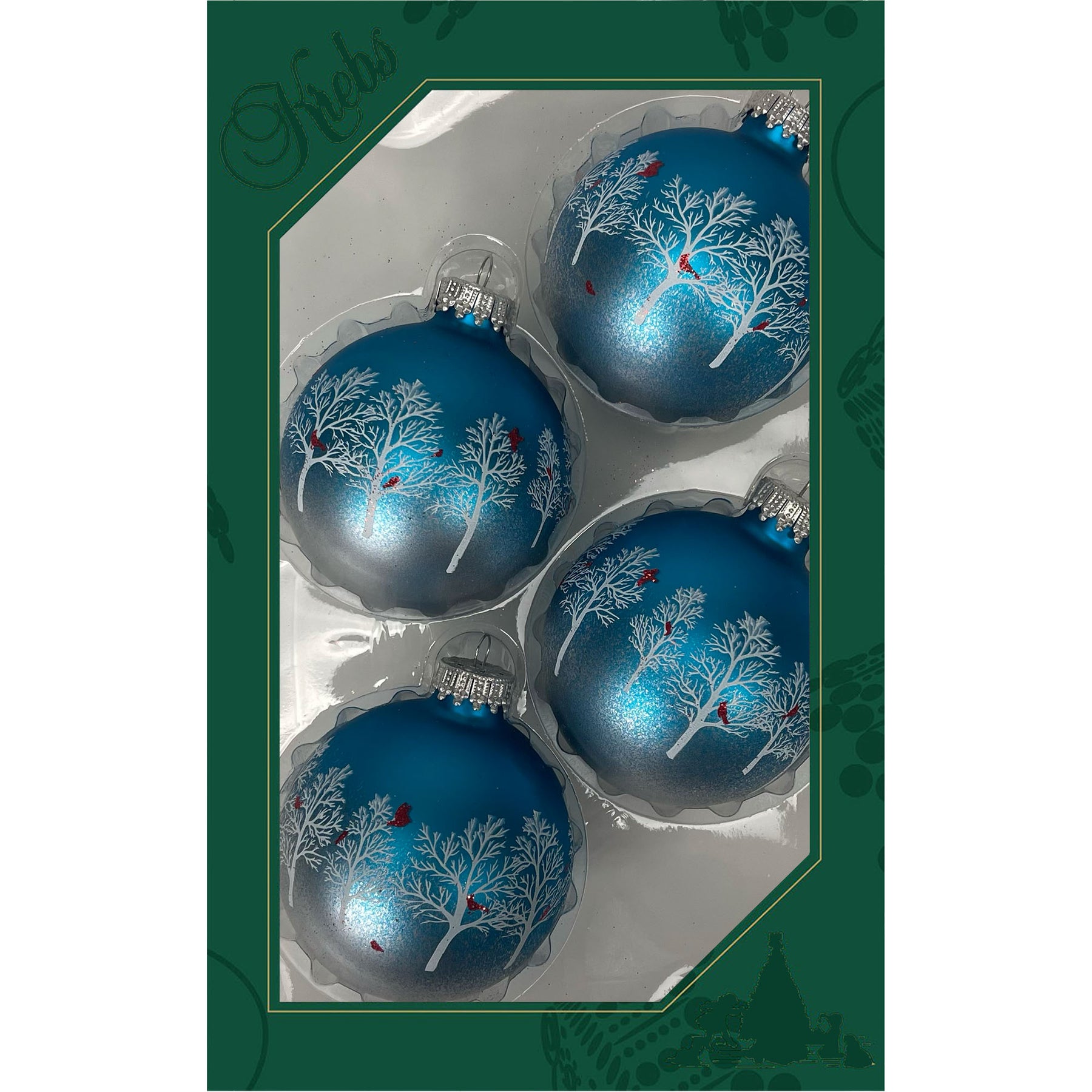 2 5/8" (67mm) Glass Ball Ornaments, Turquoise Bliss with Trees & Cardinals, 4/Box, 12/Case, 48 Pieces