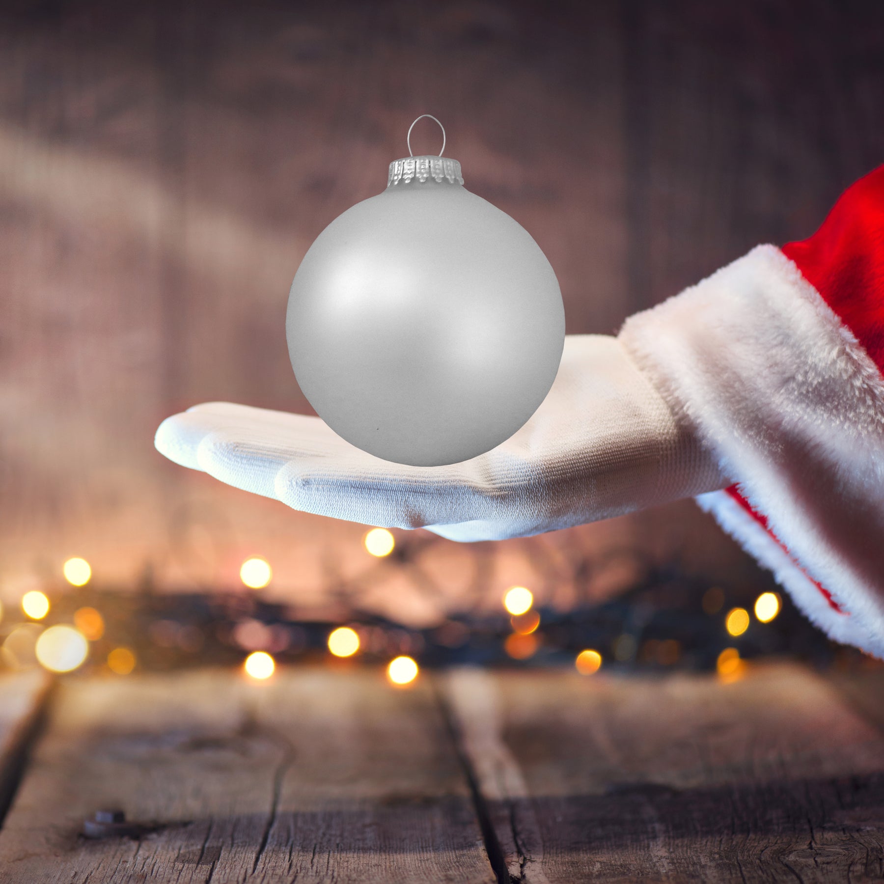 Silver Pearl 3 1/4" Glass Balls. 4 Pieces per Box. 12 Boxes per Case. Made in USA.