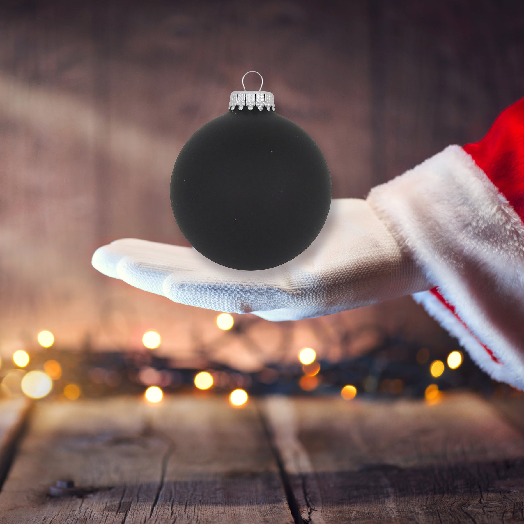 Ebony Velvet 3 1/4" Glass Ball Ornament. 4 Pieces per Box. 12 Boxes per Case. Made in USA.