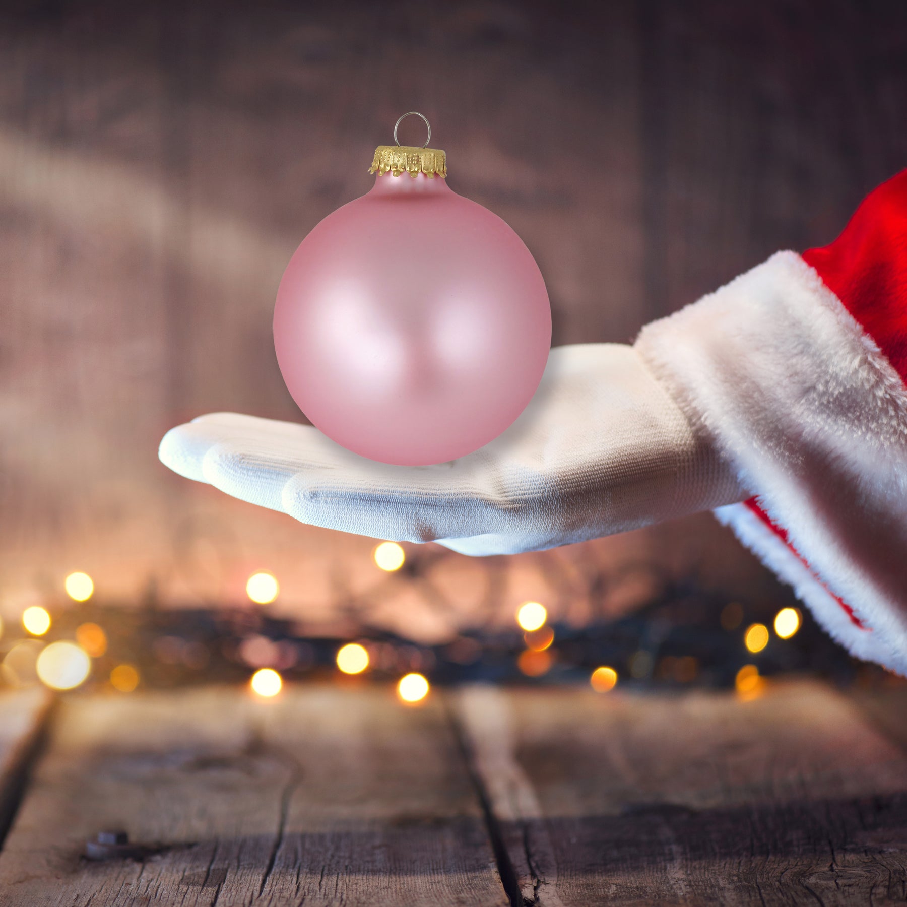 Tickled Pink 3 1/4" Glass Ball Ornament. 4 Pieces per Box. 12 Boxes per Case. Made in USA.