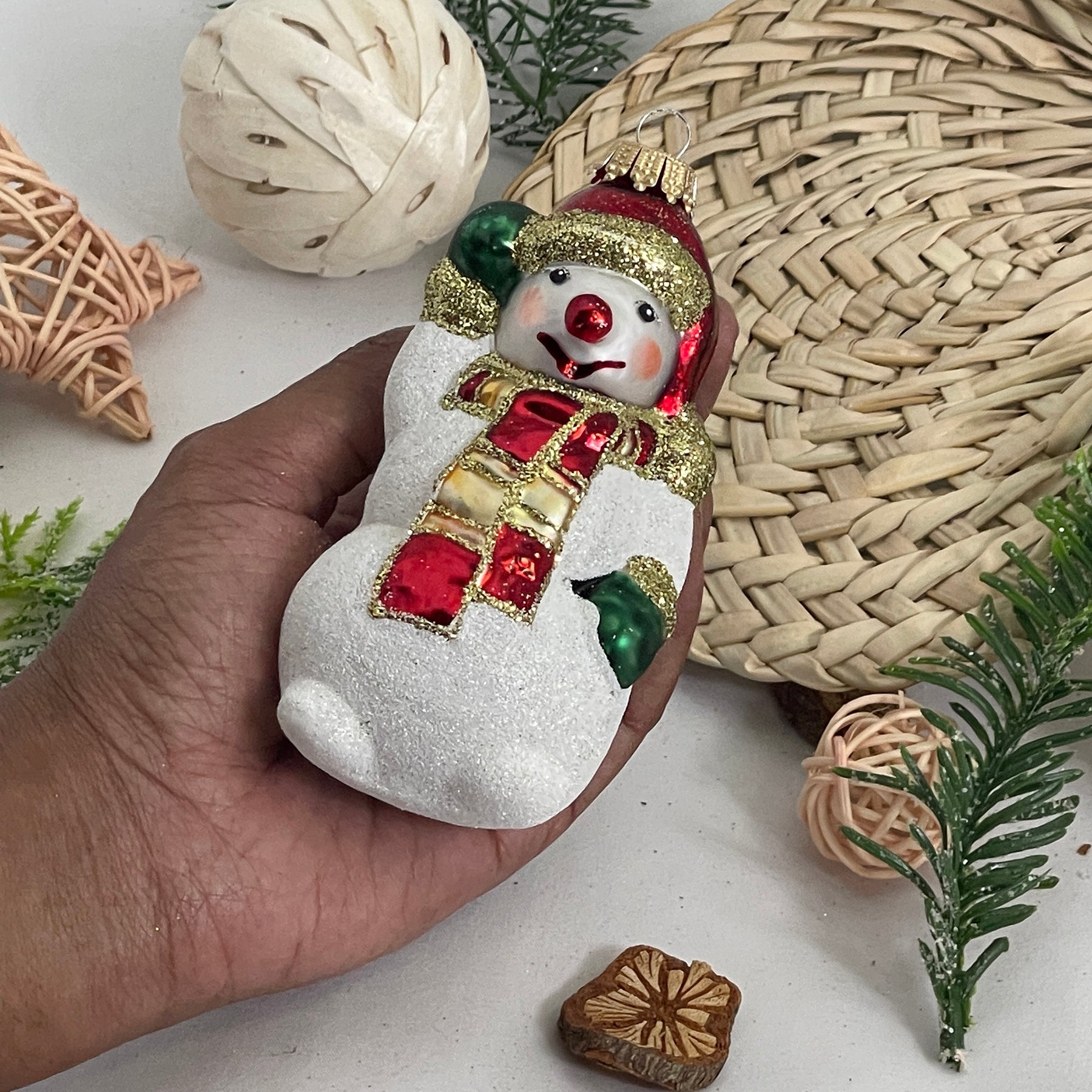 Snowman Waving White/ Red, 4.75 inches (12cm) Ornament. Bulk Packed with Hang Tag. 6 Pieces per Case. Made in Ukraine